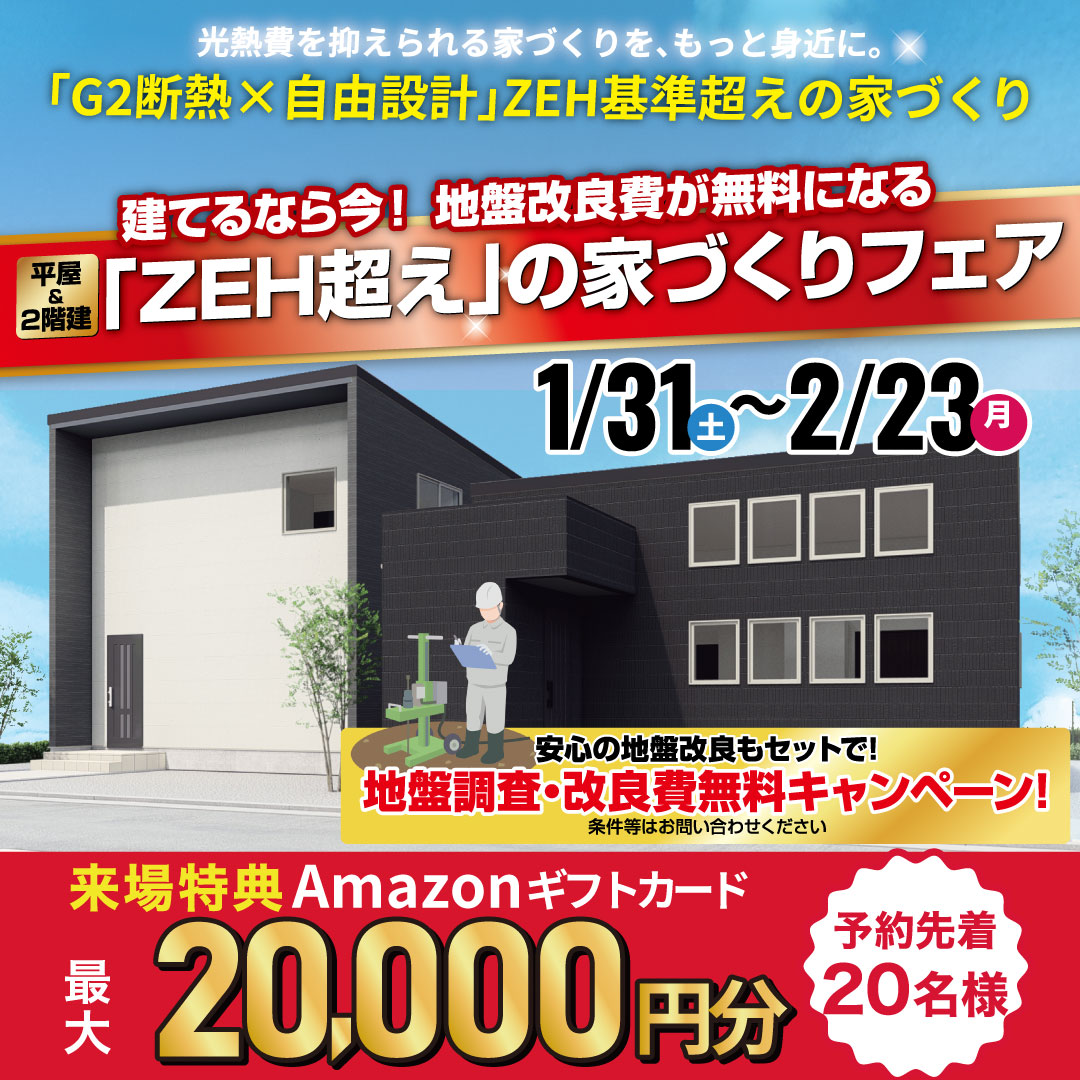 【地盤改良キャンペーン開催中】「ZEH超え」の家づくりフェア