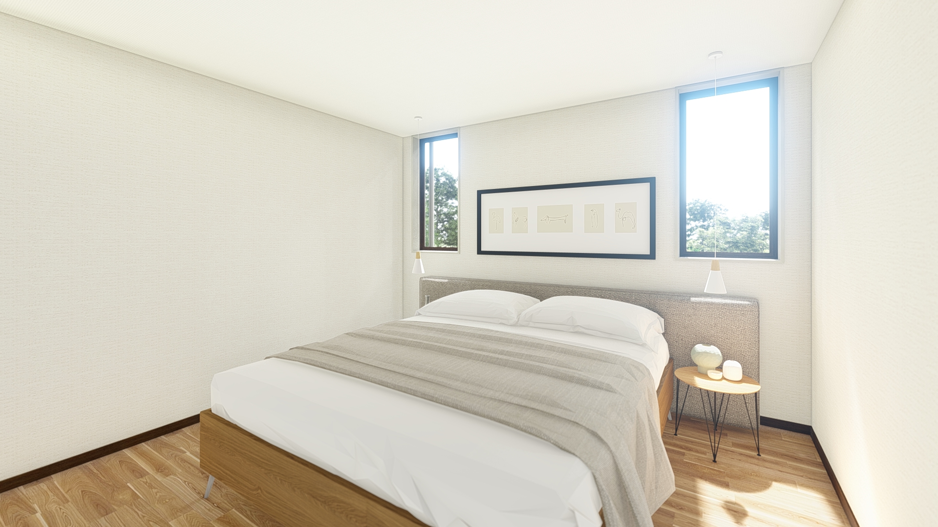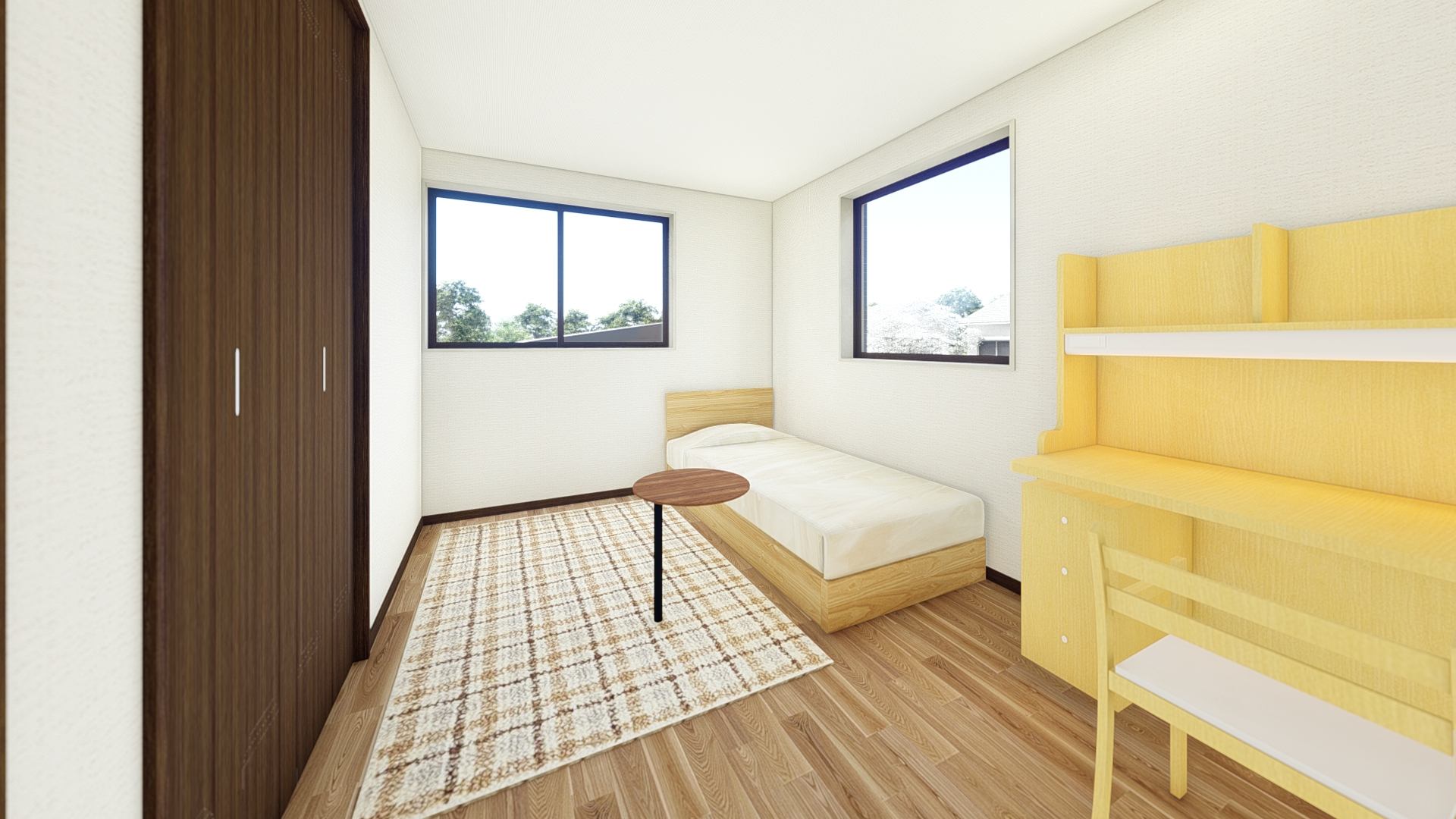 2階には3つの洋室を配置し、主寝室には大容量のウォークインクローゼットを完備。子ども部屋や書斎として使える居室もあり、ライフスタイルや家族の成長に合わせて柔軟に活用できます。中央のホールや収納スペースによって動線も快適で、日々の暮らしに寄り添った住まいです。